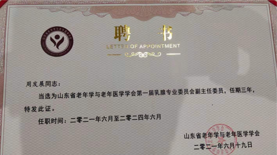 会议前一天,山东省老年医学会乳腺专业委员会选举产生,济南复大肿瘤医院周发展院长当选副主委。